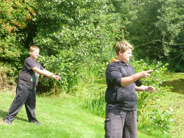 Mag ik jullie voorstellen aan Mike uit Houten en zijn broer Mark. Allebei fanatieke vissers die menige mooie snoek voor mijn voeten wegvangen maar dan ook wel weer gul zijn met stekinfo. Mike was 11 jaar toen hij besloten had om een vliegvis-set te kopen bij de winkel van de boerenbond, want hij wilde alle facetten van de vissport leren kennen. Voor nog geen 60 euro kocht hij een blisterverpakking met hengel, molen (reel) en vliegenlijn, een leadertje (nylon voorslag) en een vijftal vliegen. Een heel acceptabel hengeltje # 5, een reel voor de rest van zijn leven en een vliegenlijn, heel geschikt als oefenlijn voor een beginnende vliegvisser. De vijf vliegen zijn vaak niet de meest geschikte en meestal te groot en waarschijnlijk zijn ze allemaal in een boom beland.
